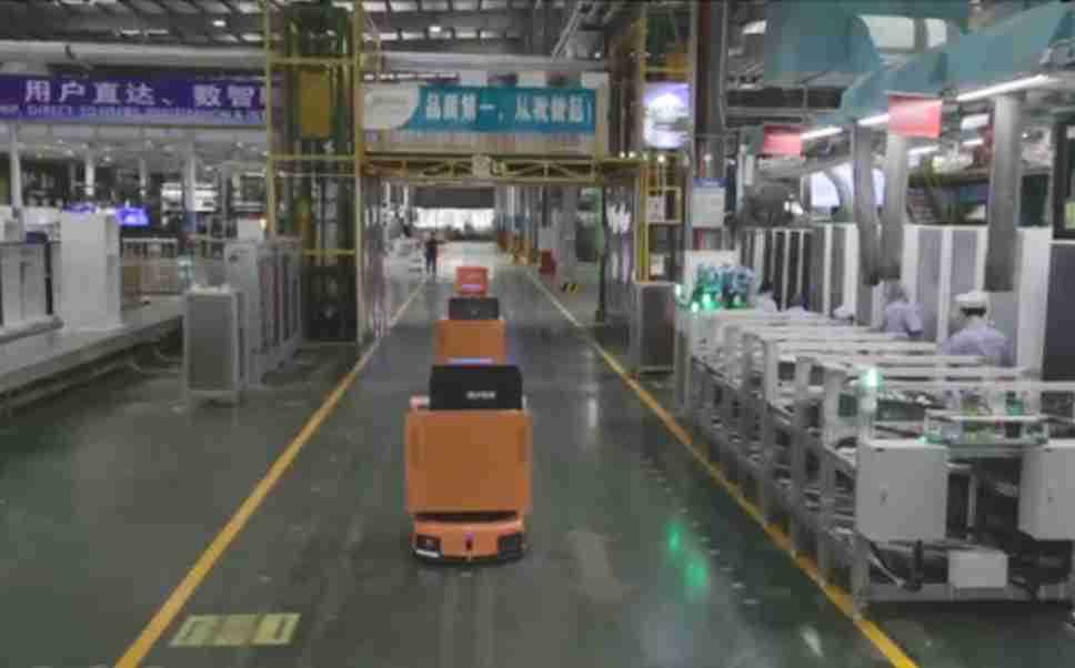 为车载冰箱物流配送打造的智能解决方案,,,包含产中物流通过潜伏举升AMR搬运至线边,,产后成品物流智能仓储,,流程包含产中物流智能齐套入库,,线边安灯叫料AMR智能配送至线边,,成品入库、、出库,,,,通过无人堆高车机器人,,,智能仓储管理替代人工作业管理,,,,实现更高存储、、更高效率、、、、更具柔性化的解决方案。。
